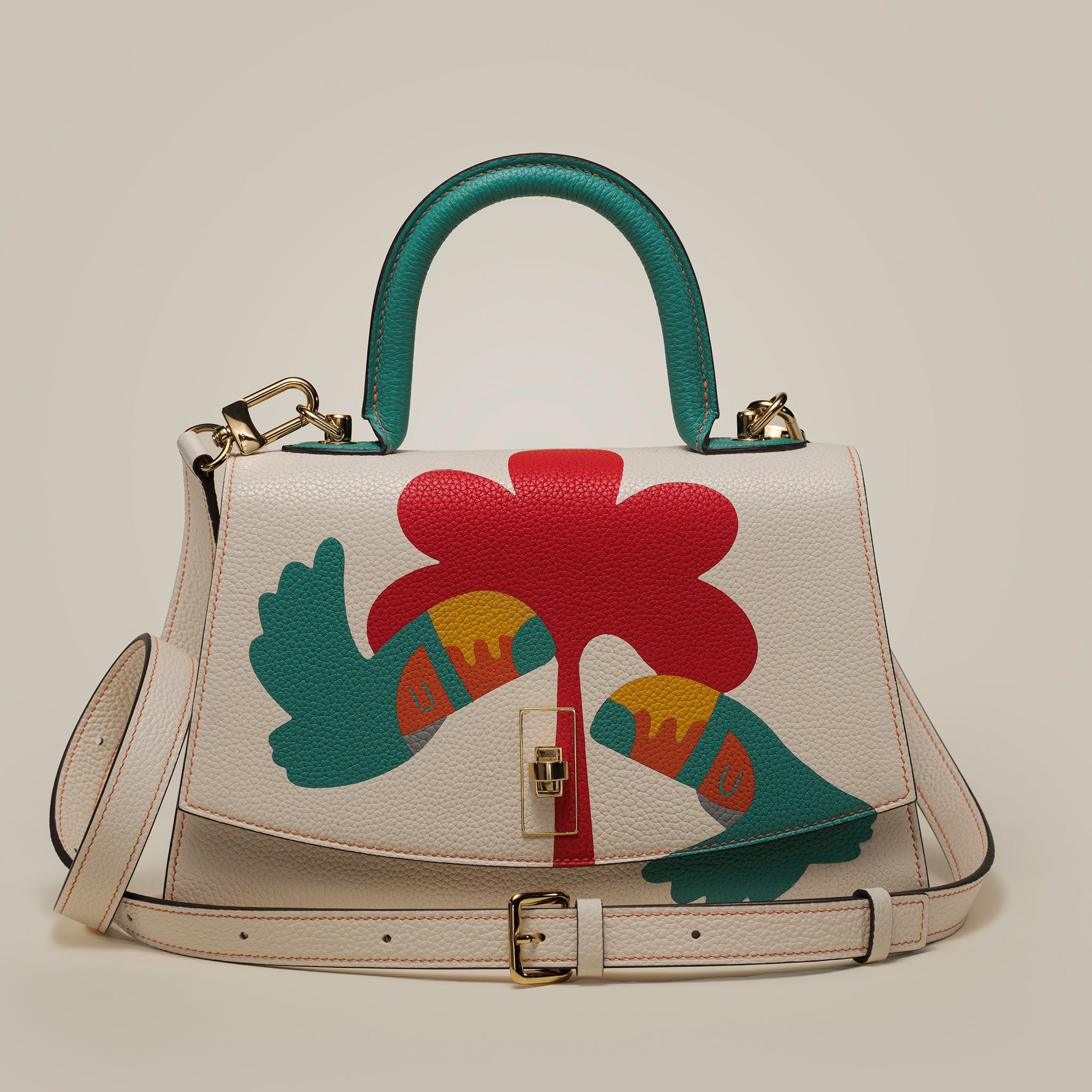 Where art meets craftsmanship, the Cadenza comes alive. In this collaboration with artist tocotocojin, her expressive painted works are reimagined through intricate leather marquetry, transforming the bag into a canvas of texture, colour, and story. Each piece carries the duality of elegance and creativity—compact in form, versatile in function, and timeless in presence. More than an accessory, the Cadenza becomes a wearable artwork that celebrates individuality and sophistication in every moment.