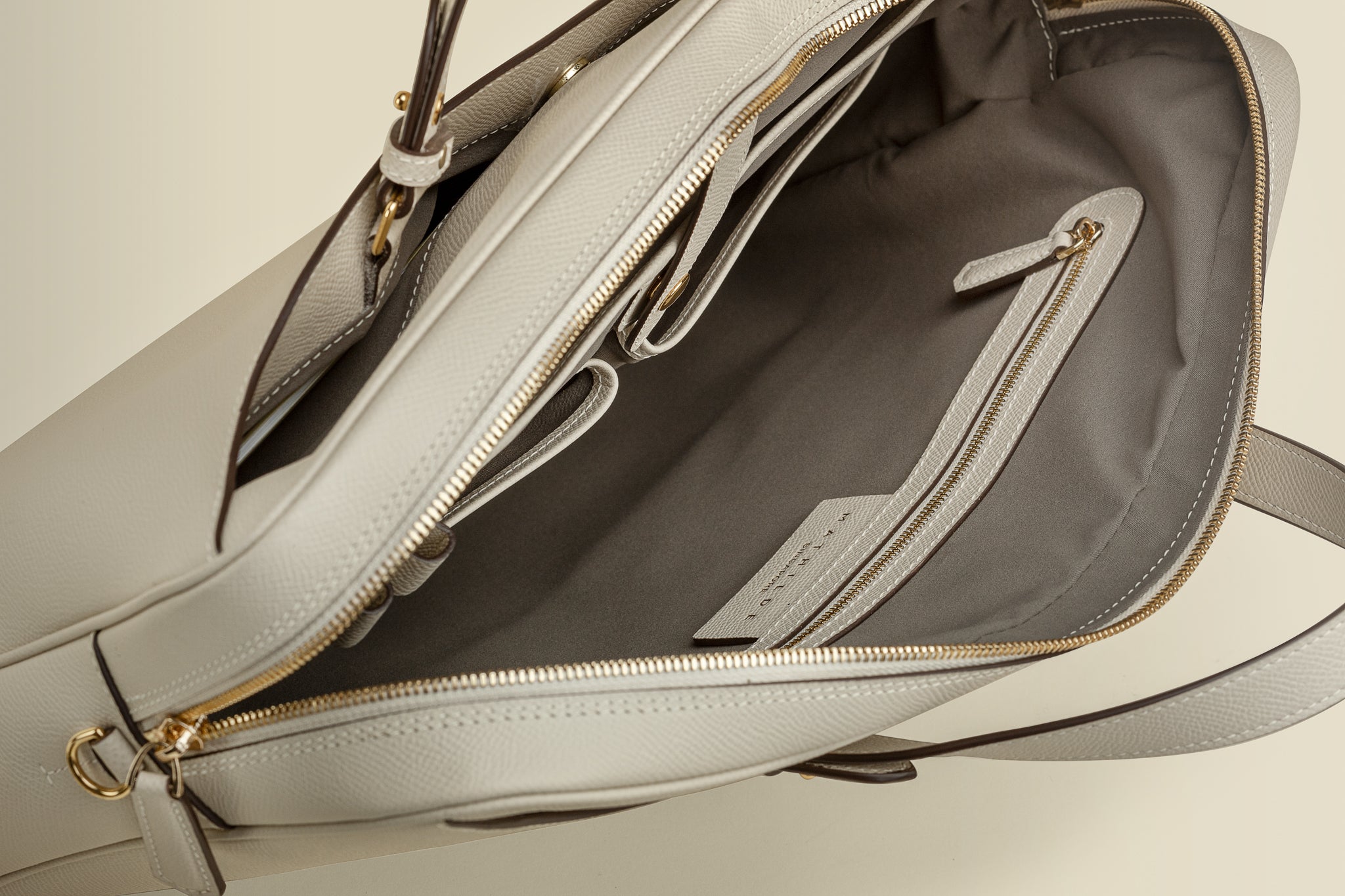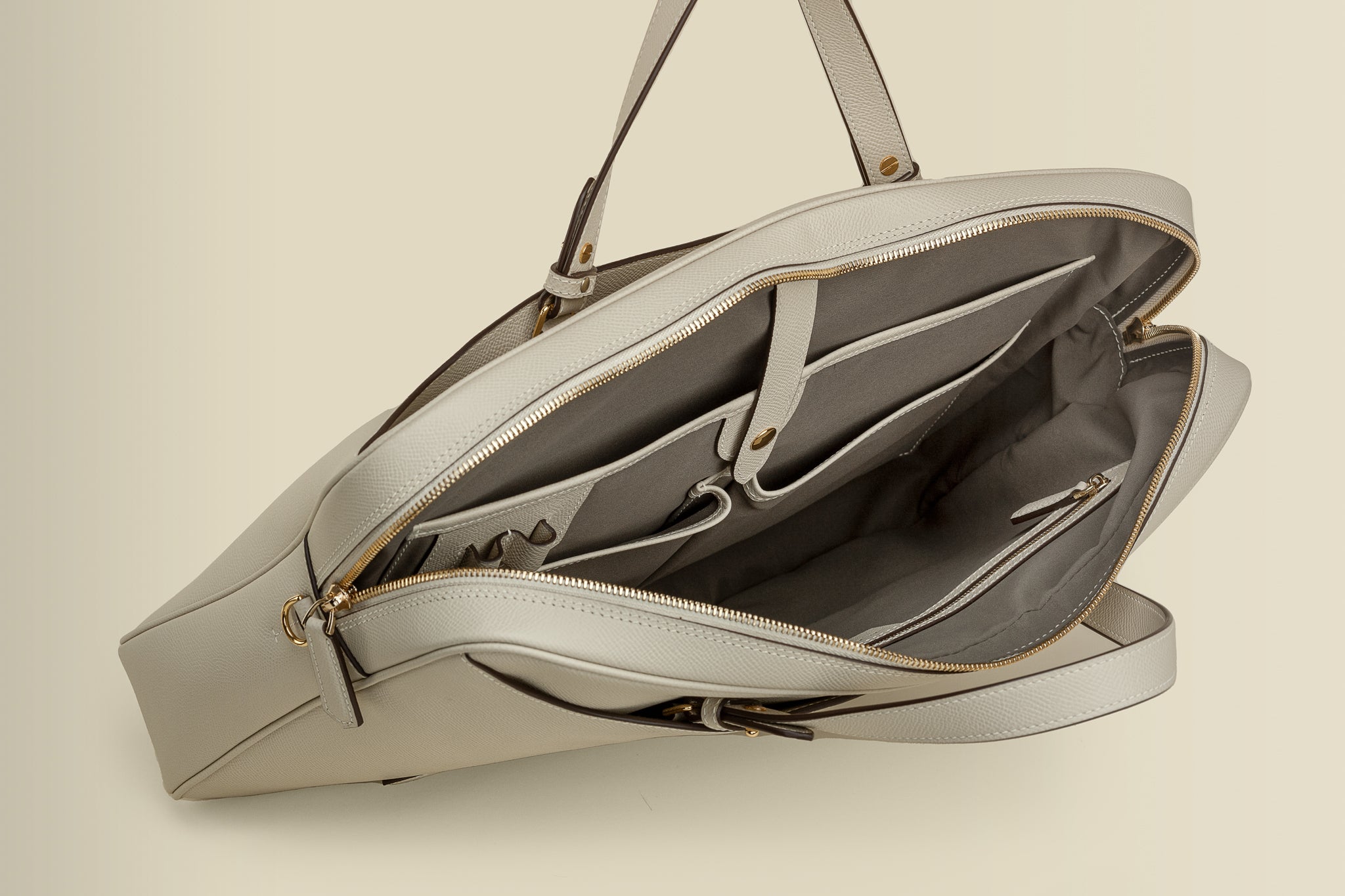 The Chelsea, embodies beautiful dignity and functionality, making it the ultimate accessory for business meetings. This stylish bag enhances your confidence, turning work into an enjoyable experience. Featuring multiple compartments for notes, documents, and chargers, the Evans ensures easy organization. Its sizable main compartment comfortably fits a 14-inch laptop, making it perfect for the professional woman who values both style and practicality.