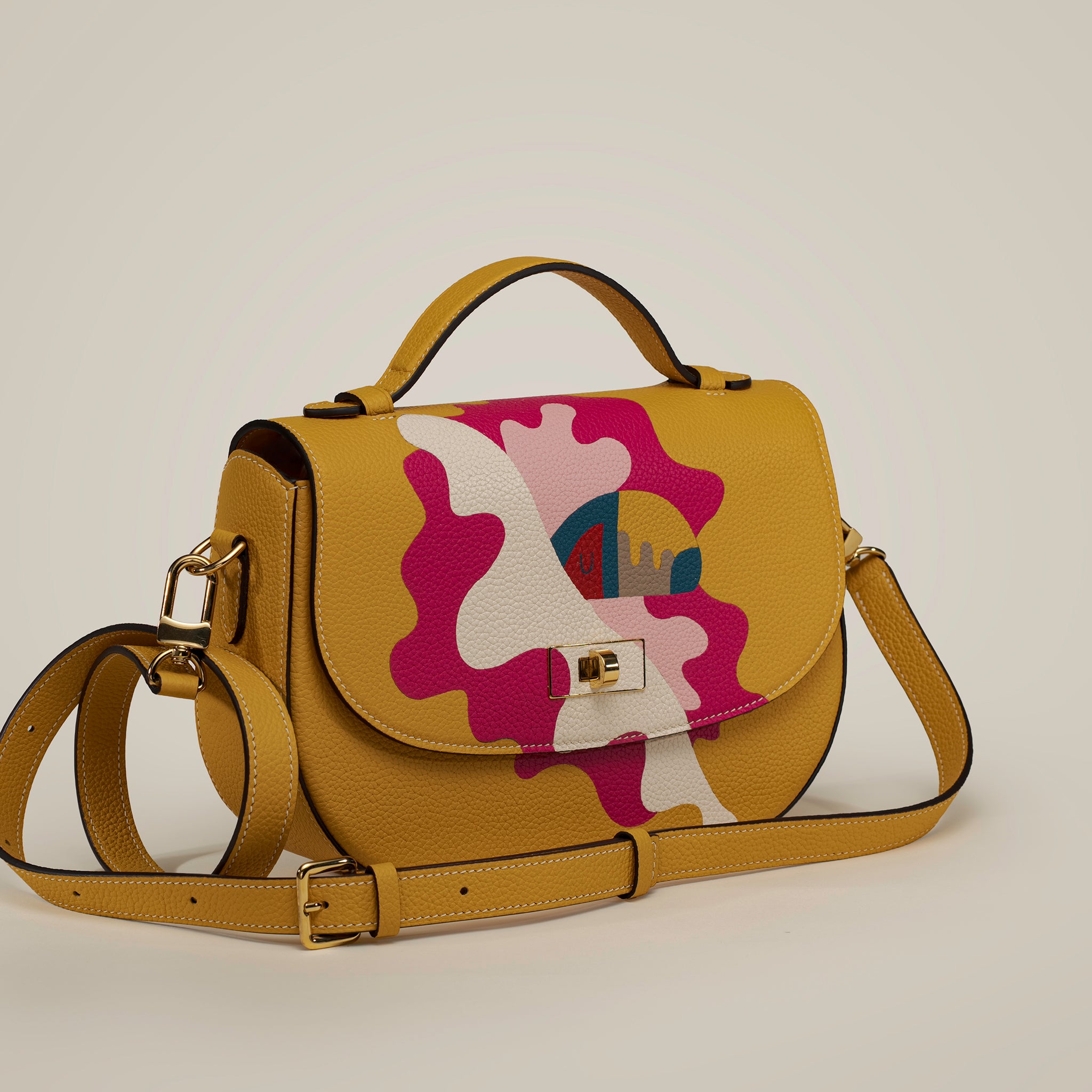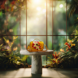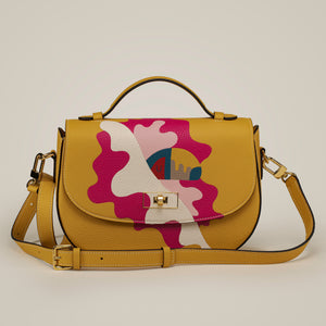 Inspired by its musical namesake, the Toccata strikes a chord where artistry and craftsmanship meet. In collaboration with tocotocojin, her painted works are transformed through intricate leather marquetry, creating a mesmerizing criss-cross mosaic of exquisite full-grain leathers. The composition is both rhythmic and refined—its silhouette elegant, its strap effortlessly detachable, its interior spacious yet graceful. From day into evening, the Toccata resonates as a wearable artwork, carrying sophistication and creativity in perfect harmony.